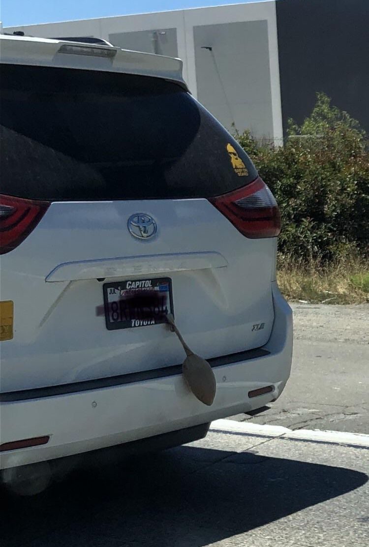 Вопрос: «Что это за светло-коричневый мешочек свисает с рамки номерного знака?»