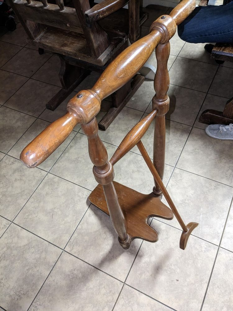 Вопрос: «Примерно 1 метр в высоту, сделано из цельного дерева, но весит не много, может быть 2,5-5 кг. Стержень, свисающий вниз, качается, а верхняя часть просто ручка, которая не двигается»