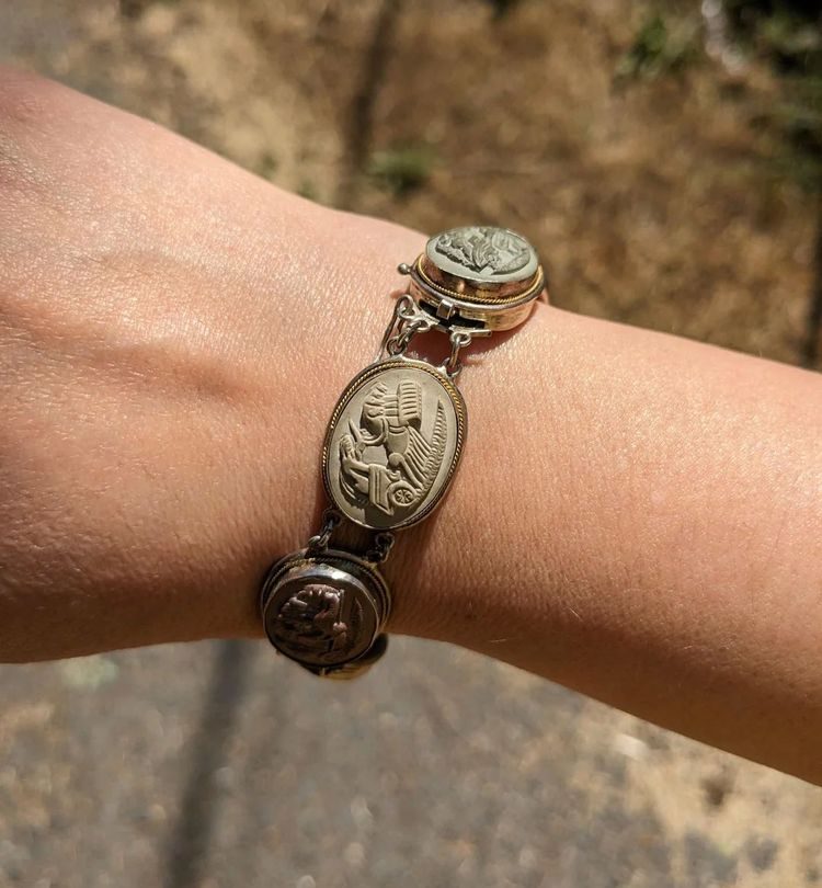 «Сегодня я нашла 100-летний браслет с камеей из лавового камня. Это настоящее золото и серебро»