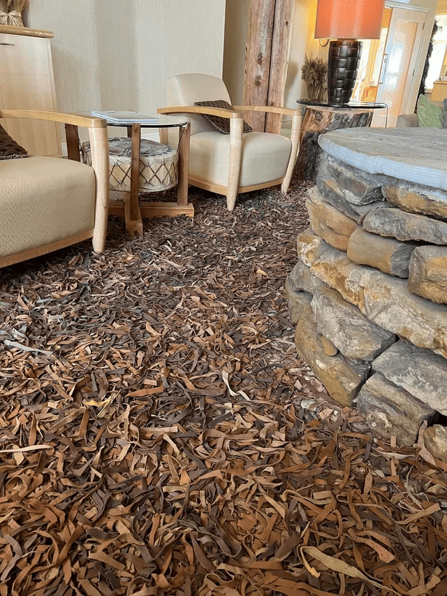 Ковёр из полосок кожи в спа