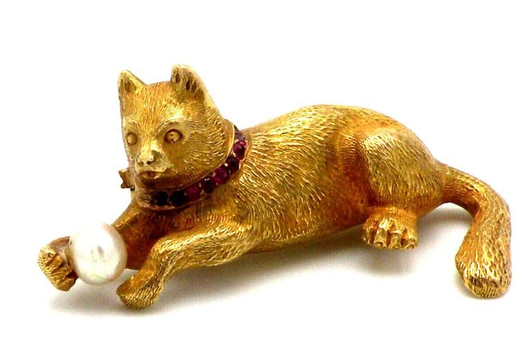 Кото-брошь, золото, жемчуг, рубины, Европа/США, 1930-е годы