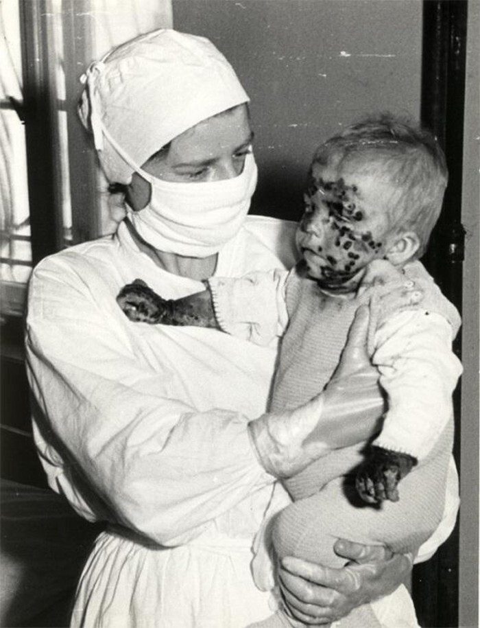 Медсестра с ребенком во время эпидемии оспы, Вроцлав, Польша, 1963 год