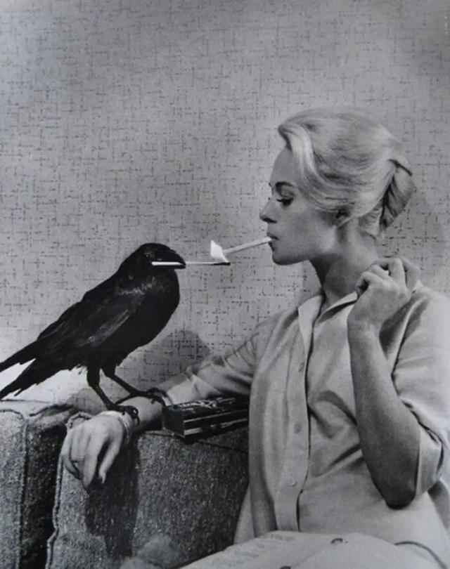 Актриса Типпи Хедрен на съемках фильма «Птицы», 1963 год