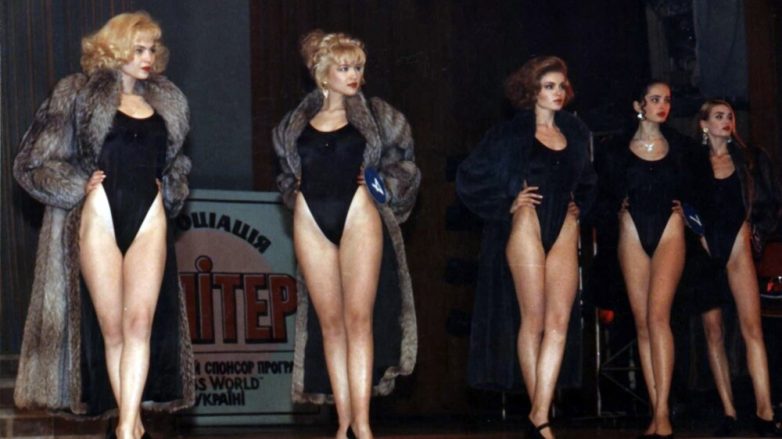 Девушки в шубах позируют на конкурсе «Мисс Украина», 1993 год.