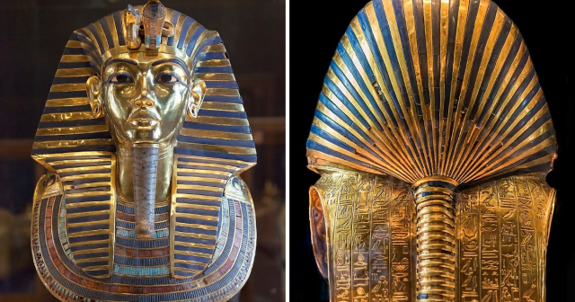 Погребальная маска Тутанхамона. Вид спереди и сзади. Создана приблизительно в 1323 году до нашей эры