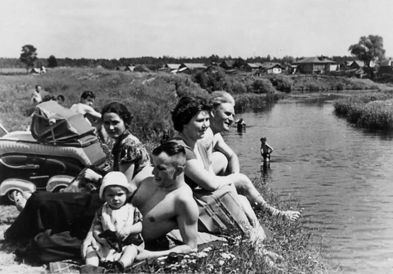 Юрий Гагарин с семьей на реке Клязьма в Пушкино Московской области, июнь 1960 год