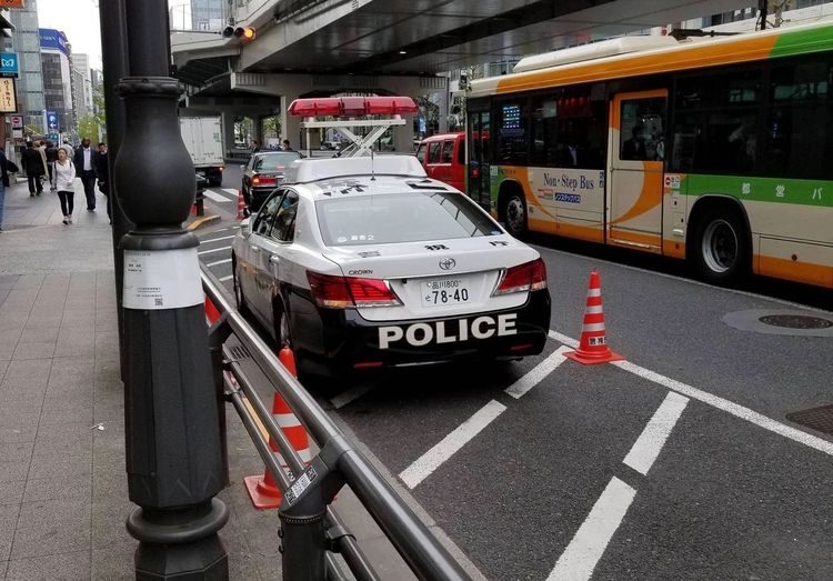 Японские полицейские машины могут поднять мигалки на своих автомобилях, чтобы они были более заметны
