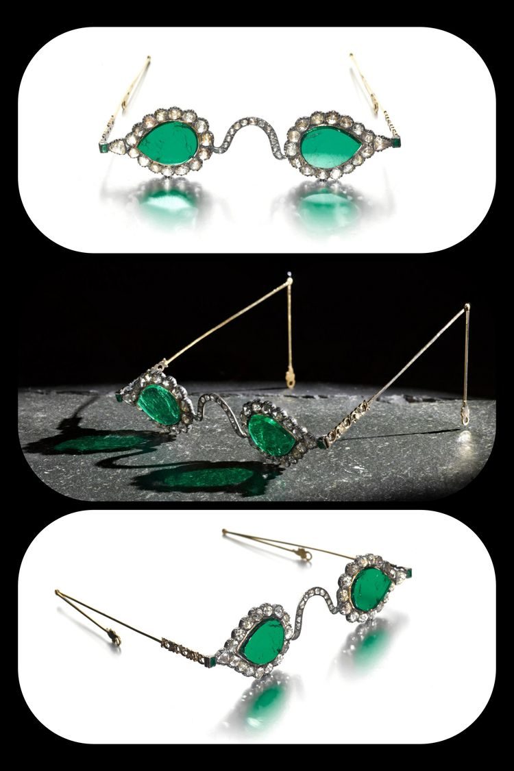 Очки «Врата рая» из Империи Великих Моголов, около 1630-1660 гг. н. э.: линзы этих очков были вырезаны из одного изумруда весом 300 карат, добытого на шахте в Колумбии