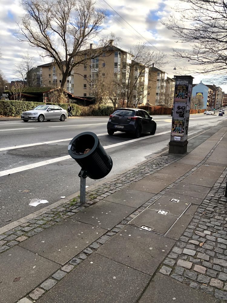 Некоторые урны в Копенгагене наклонены, поэтому велосипедисты могут выбрасывать мусор прямо во время движения