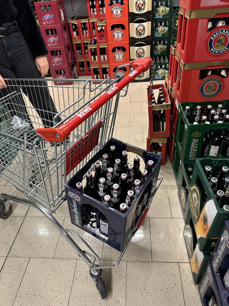 Тележки для покупок в Германии имеют специальный держатель для пивных ящиков