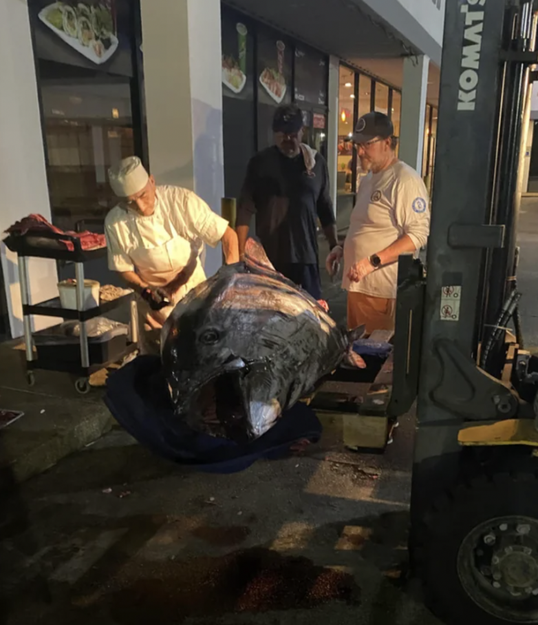10. Сушисты ресторана разделывают гигантского 300-килограммового голубого тунца