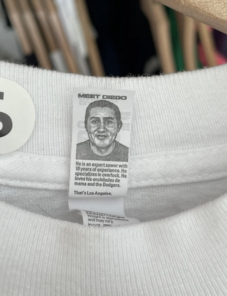 «Знакомьтесь, Диего. Он портной с 10-летним опытом. Он специализируется на оверлоке. Любит энчиладас и Доджерс», — гласит надпись.