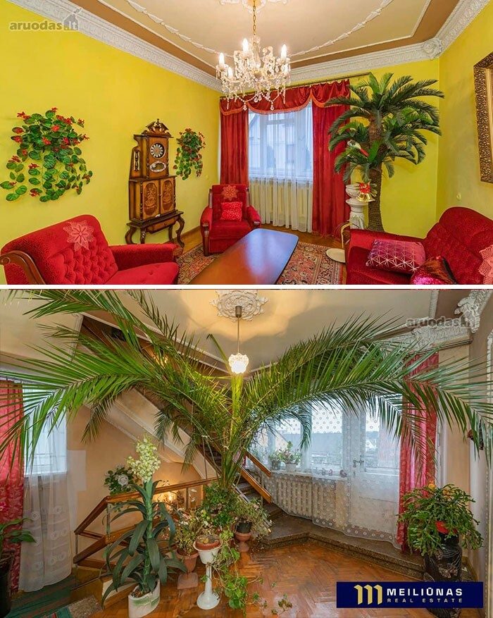 «Литовцы хотят жить хорошо и красиво. Но многие вещи они устанавливают сами, пытаясь сэкономить. Чаще всего это означает, что они работают без дизайнера интерьера, — рассказывает риелтор и автор этой коллекции. — В стране очень много неликвидных зданий, возведенных в советское время. Эти дома примечательны арками, козырьками, размерами и количеством комнат, странными окнами, гипсовой лепниной, расписными вставками и т.д. Самый интересный случай — двухуровневый подвал».