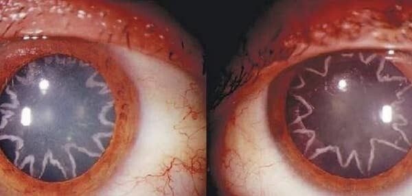 А вот как будут выглядеть электрические ожоги на глазах — по сути, те самые «звездочки в глазах»