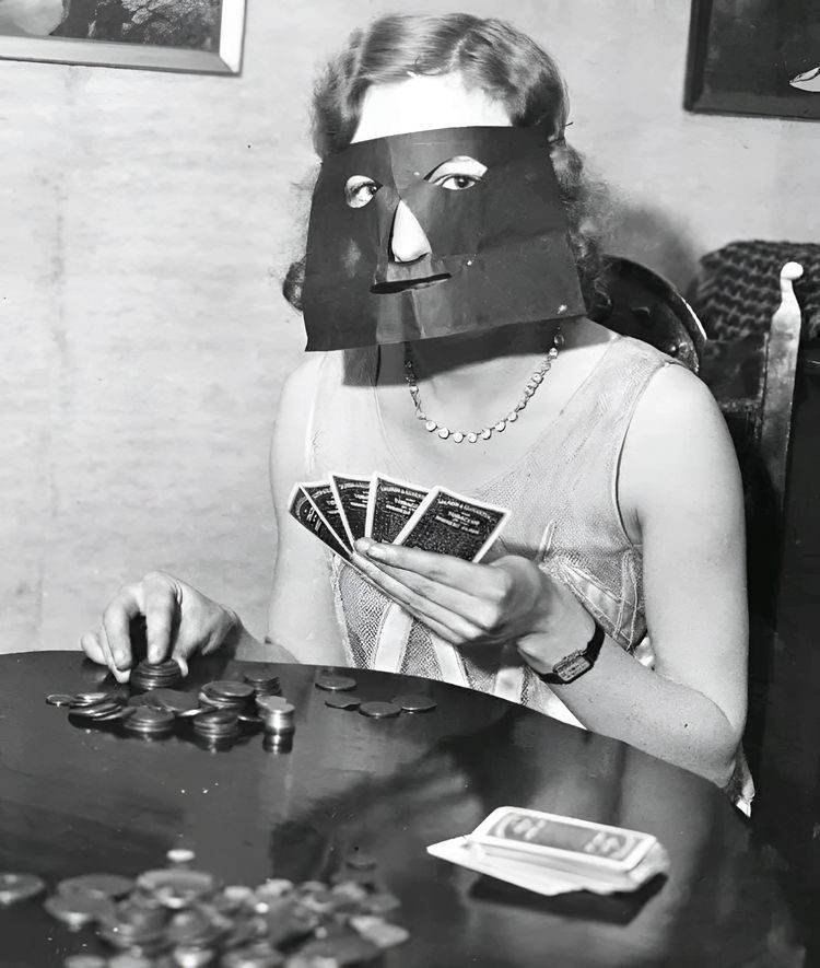 Скрывающая эмоции маска для игры в покер, 1937 год