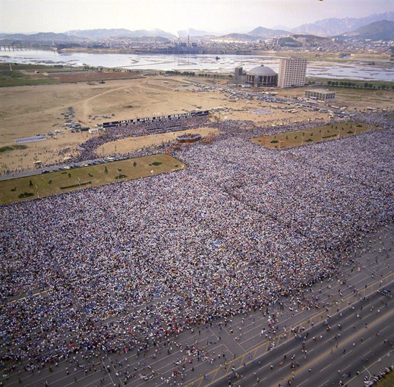 Евангелист Билли Грэм произносит проповедь для 1,1 млн корейцев в Сеуле, 3 июня 1973 год