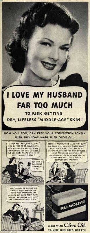 Иметь сухую безжизненную кожу — значит рисковать своим браком. Чтобы такого не было, пользуйтесь мылом Palmolive.