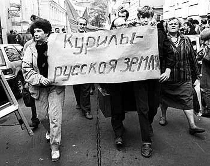 «Курилы — русская земля». Демонстрация, организованная Всероссийским комитетом защиты Курил. Российская Федерация, 1992 год.