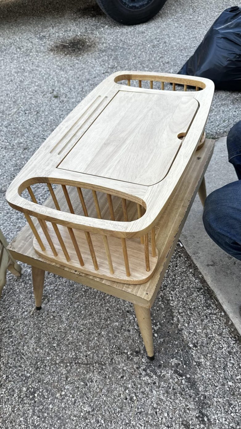 Это прикроватный столик, его используют для чтения в постели. По бокам можно положить бумаги. Середина поднимается, и можно положить книгу под удобным углом.