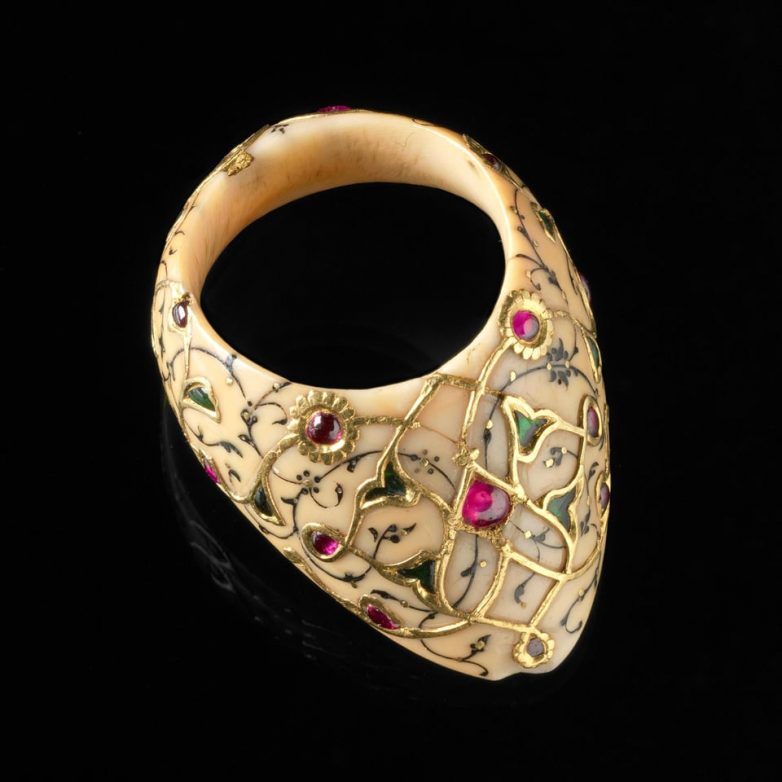 Кольцо надевали на большой палец при стрельбе из лука, чтобы защититься от повреждений тетивой.
