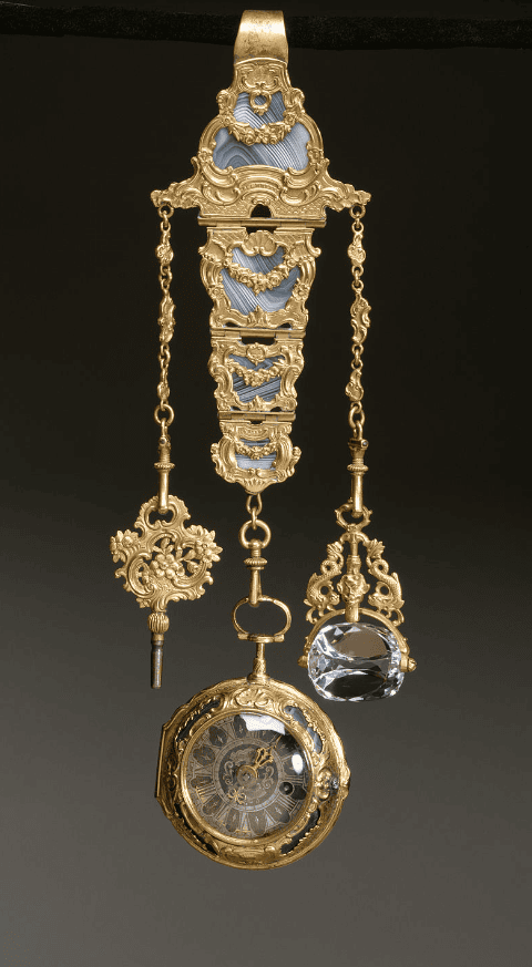 В XVIII-XX века шатлен выполнял не только эстетическую, но и практическую функцию. Это был своеобразный пояс с различными зажимами, на которые крепились всякие безделушки, вроде часов, ключей, печатей и кошелька.