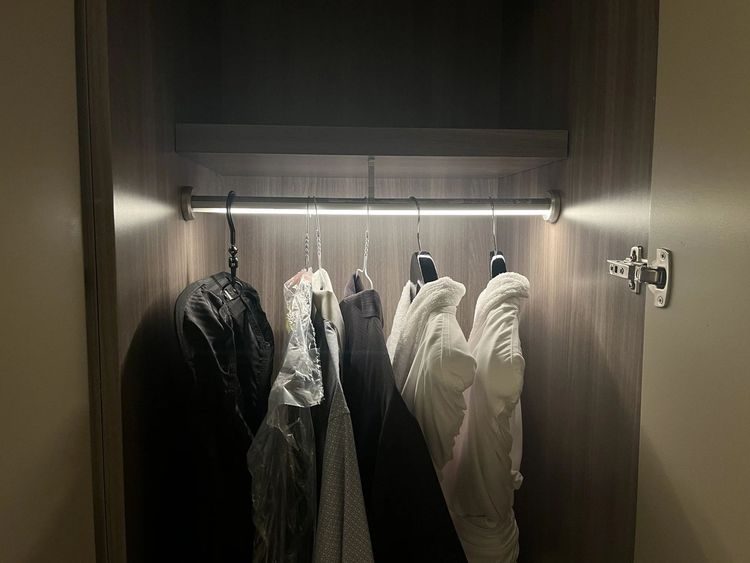 В эту вешалку для шкафа отеля встроена светодиодная лента
