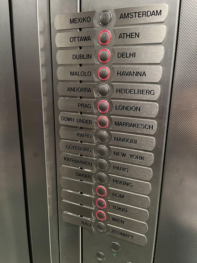 Отель, в котором на кнопках перечислены названия городов, а не цифры