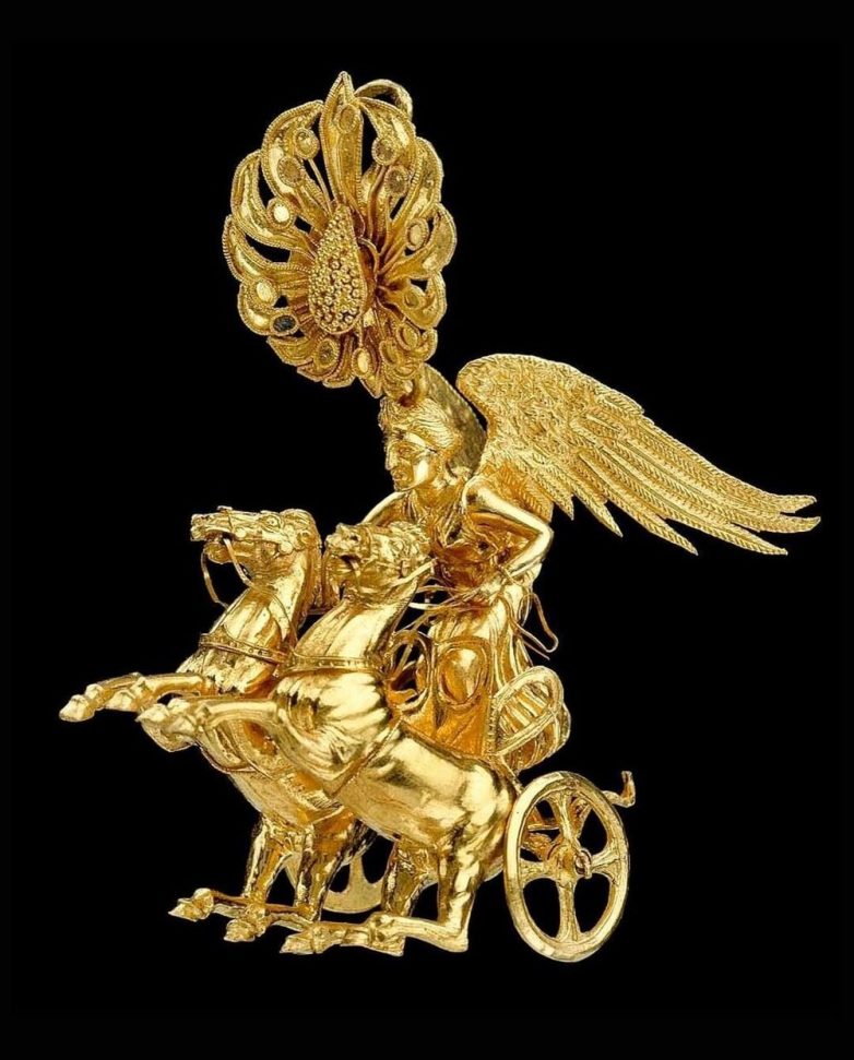 Серьга с изображением богини Ники, управляющей двуконной колесницей.