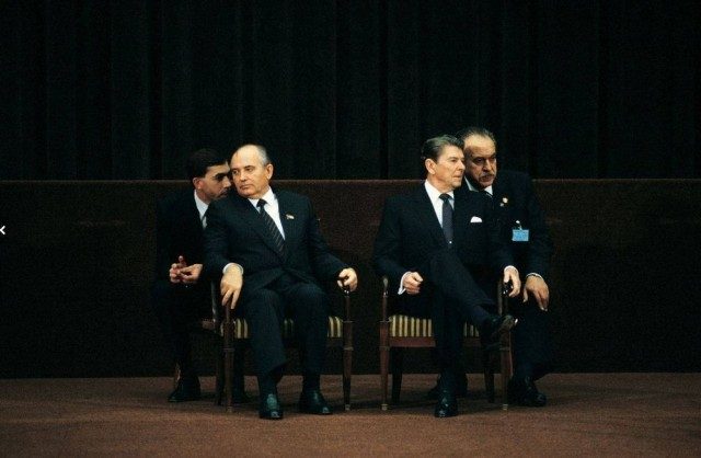 По разные стороны? Михаил Горбачёв и Рональд Рейган, 1985 год.