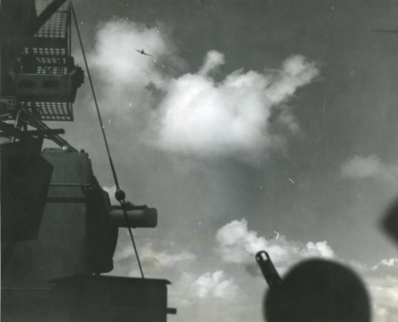 Последние мгновения пикирования камикадзе на авианосец «Лексингтон», 5 ноября 1944 года.
