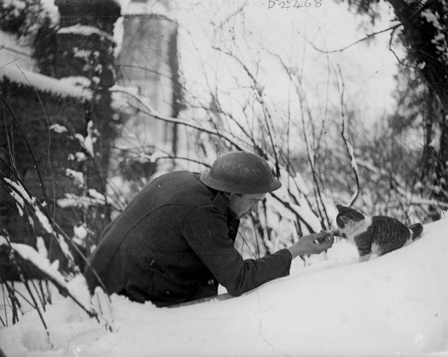 Как без котейки на фронте? Британский солдат во Франции. Первая мировая война, 1917 год.