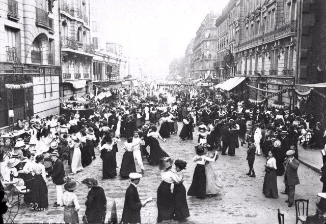 Танцы на улице в День взятия Бастилии. Париж, 14 июля 1912 года.