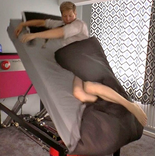 Эта единственная в своём роде кровать с пневматическим механизмом, который быстро перемещает матрас вперёд, отправляя спящего в полет.