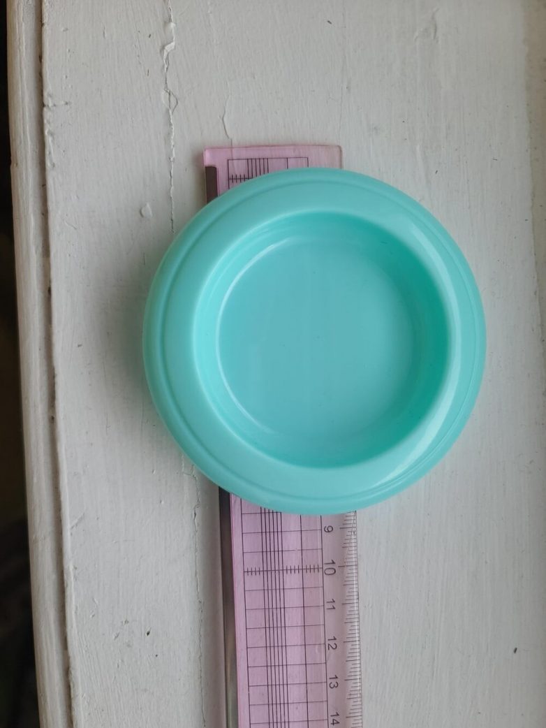 11. Бирюзовая пластиковая штуковина похожа на крышку для чего-то. Нашёл в детской комнате