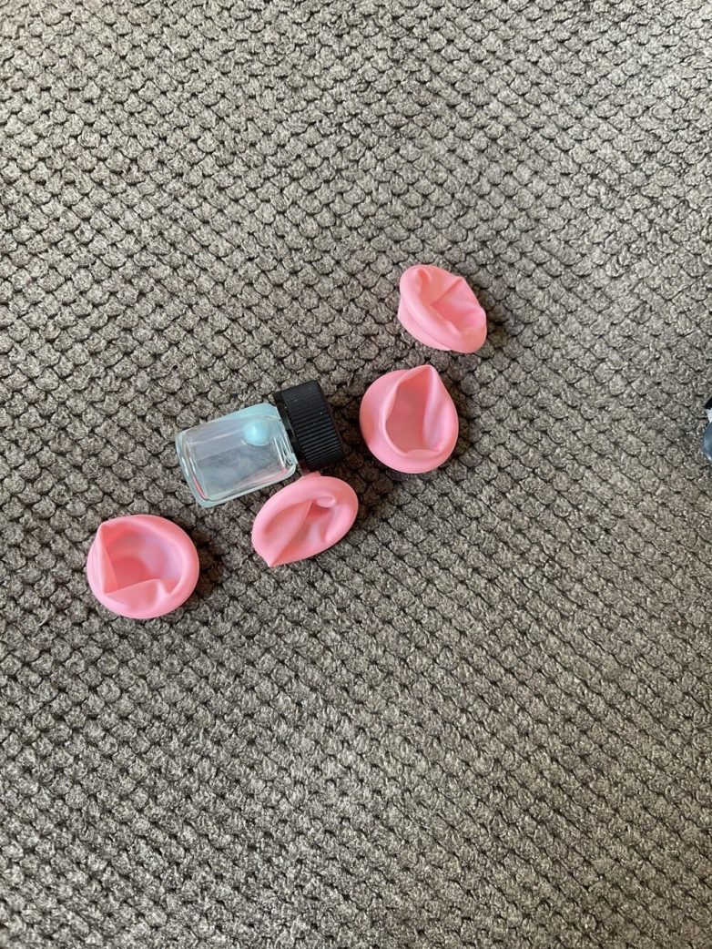 1. Нашли крошечный пузырек с густой жидкостью с шариком внутри. Там также были четыре резиновые штуковины для пальцев, и все это было в запечатанном пакете из черной фольги. Есть идеи, что это?
