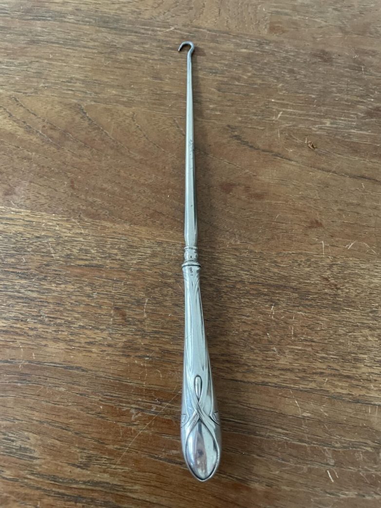 Крючок использовали для застегивания крошечных пуговиц на женских ботинках.