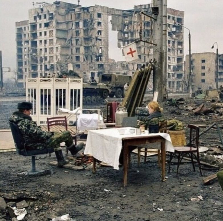 Российские солдаты отдыхают во время боя под Грозным, 1999 год