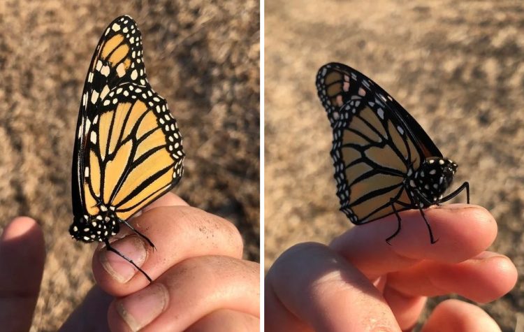 «Бабочка-монарх прилетела ко мне и села на шляпу, пока я работала в саду. Я попыталась пересадить её на молочай, и заметила, что у бабочки не было головы»