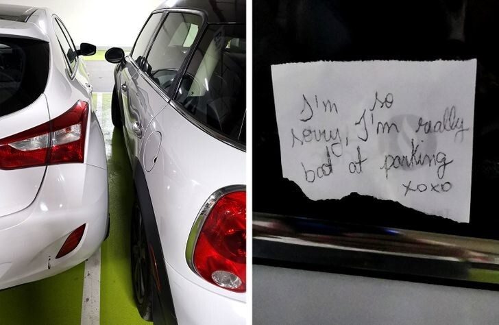 15. В записке говорится: “Мне очень жаль, я действительно плохо паркуюсь”