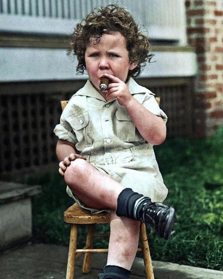 Трехлетний Роберт Куигли курит сигару, Вашингтон, округ Колумбия, 30 августа 1928 года