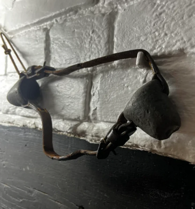 «Кожаный ремешок с 2 чашеобразными окончаниями, вероятно свинцовыми. Найден в английском фермерском доме XVI века»