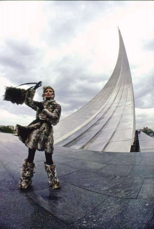 «Увезу тебя я в тундру...» советская манекенщица Галина Миловская на ВДНХ в Москве. Фото для журнала Vogue. 1969 г.
