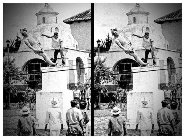 Конкистадоропад. Коренной житель свергает статую испанского конкистадора Диего де Масариегоса в день 500-летия открытия Америки. Чьяпас, Мексика, 1992 год.