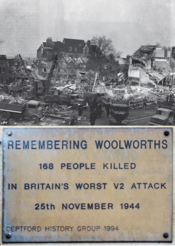 В полдень 25.11.1944 немецкая реактивная ракета V-2 (Vergeltungswaffe-2) нанесла удар по переполненному людьми магазину Woolworths в лондонском районе New Cross с массой жертв.