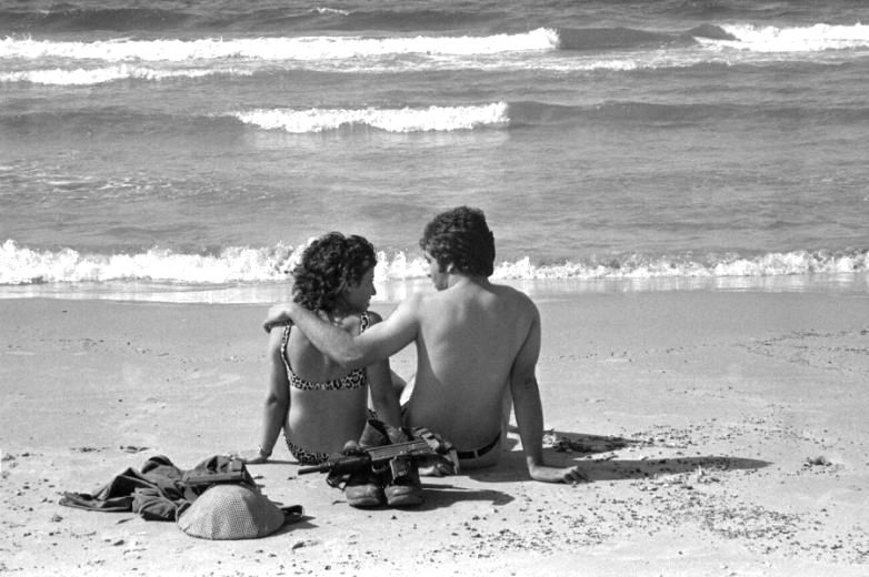 Октябрь 1973 года. Израильский солдат со своей девушкой на пляже в Тель-Авиве во время Войны Судного дня.