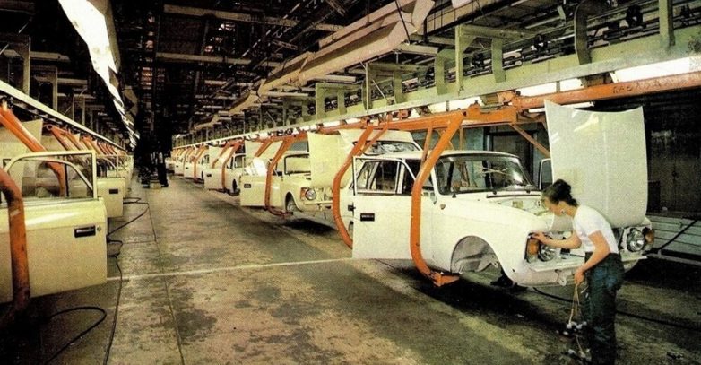 Главный конвейер Ижевского автомобильного завода, начало 1990-х.