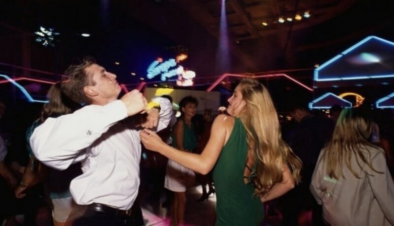 Молодые люди танцуют на дискотеке «У ЛИС'Са», Москва, 1992 год