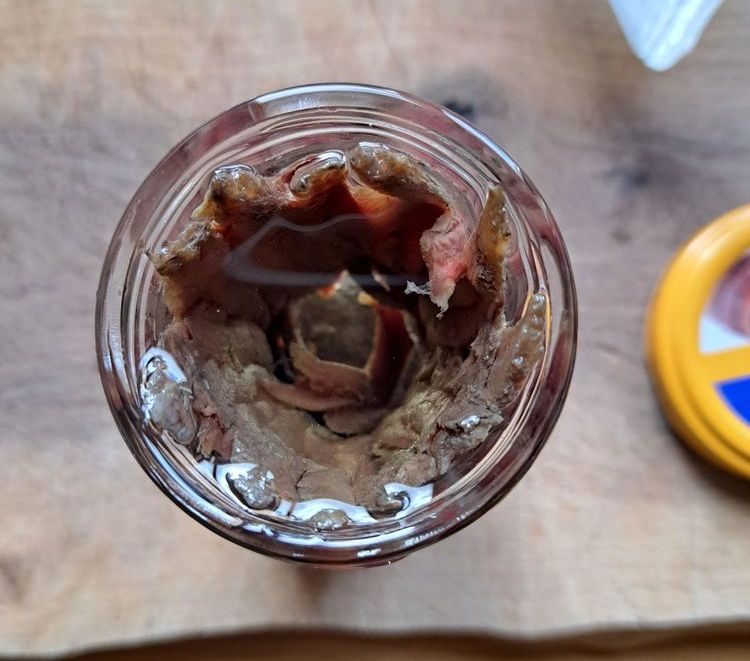 В центре совершенно новой банки с анчоусами автора ждала пустота! Производитель подлым образом раскладывает филе рыбки по стенам банки, чтобы создавалось впечатление, что она полна продукта. Мы строго уверены, что это должно караться по закону