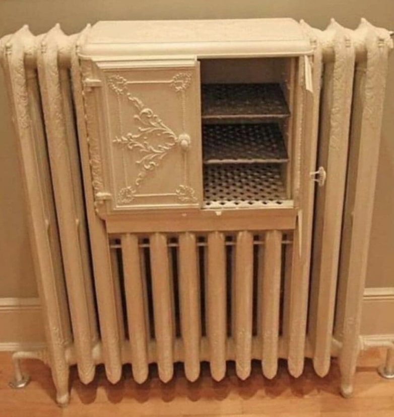 В европейских и американских домах конца 19 века можно было увидеть крайне необычный отопительный прибор — чугунный радиатор со специальным шкафчиком для посуды. Такие приспособления устанавливались на кухнях либо в столовых. Впервые это чудо появилось в 1892 году в США. Несколько позже приспособление появилось в домах европейцев. В конце 19 века отопительный прибор с дополнительными функциями можно было встретить и в России.