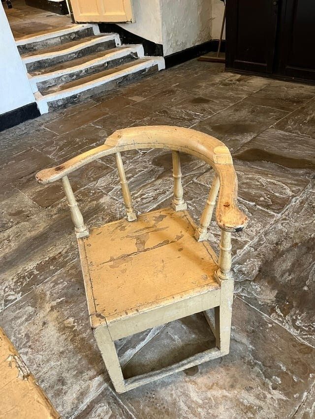 Угловой стул в английском георгианском стиле, сделанный примерно в последней четверти XVIII века. Найден в замке Рэби в графстве Дарем